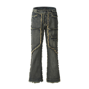 Производители одежды, стирающие лоскутные джинсы на заказ, широкие брюки, мешковатые джинсы, мужские джинсы, мужские джинсы