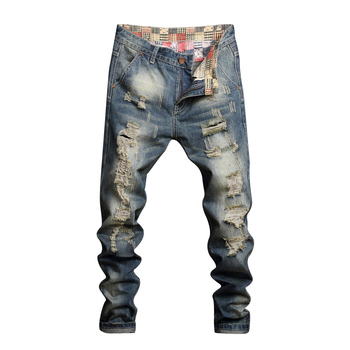 H7760 модные роскошные патчи дизайн стрейч на заказ большие размеры джинсовые шаровары мужские джинсы для мужчин